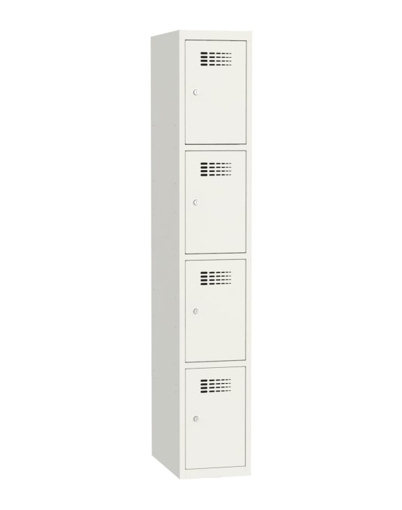 Seria SUS W 314 marki Malow to metalowe szafki z czterema skrytkami na rzeczy osobiste w jednym module.