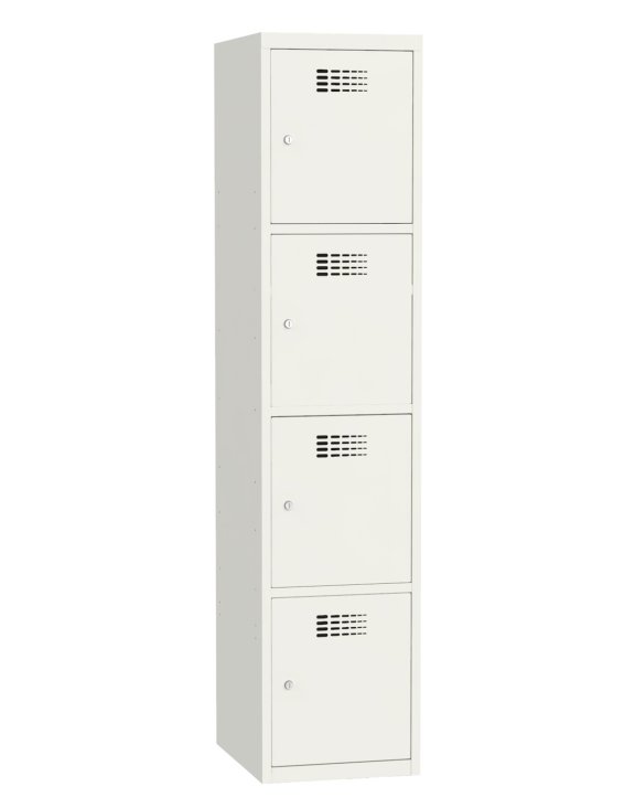 Metalowe szafki z czterema komorami na ubrania w jednej kolumnie z serii SUS W 414 marki Malow.
