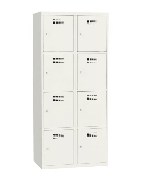 Szafa do przechowywania odzieży z ośmioma skrytkami w dwóch kolumnach z serii SUS 424 polskiego marki Malow.