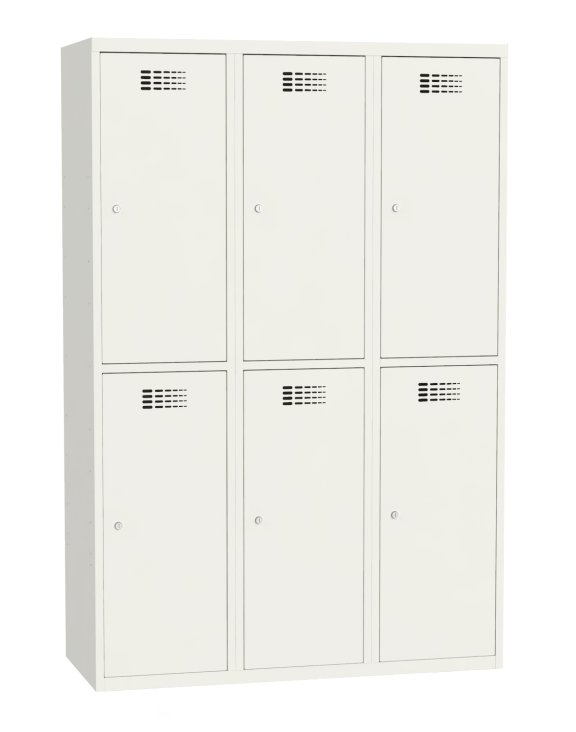 Prezentowane szafki mają moduły o szerokości 40 cm. W jednym module znajdują się dwie komory ubraniowe. W oferowanym produkcie szafka posiada trzy moduły. Szafki z inną ilością skrytek w module można zobaczyć w zakładce PRODUKTY Z RODZINY.