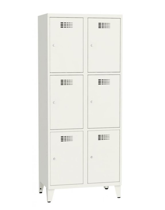 Metalowa szafa ubraniowa na nóżkach z sześcioma skrytkami w dwóch kolumnach z serii SUS 423 marki Malow