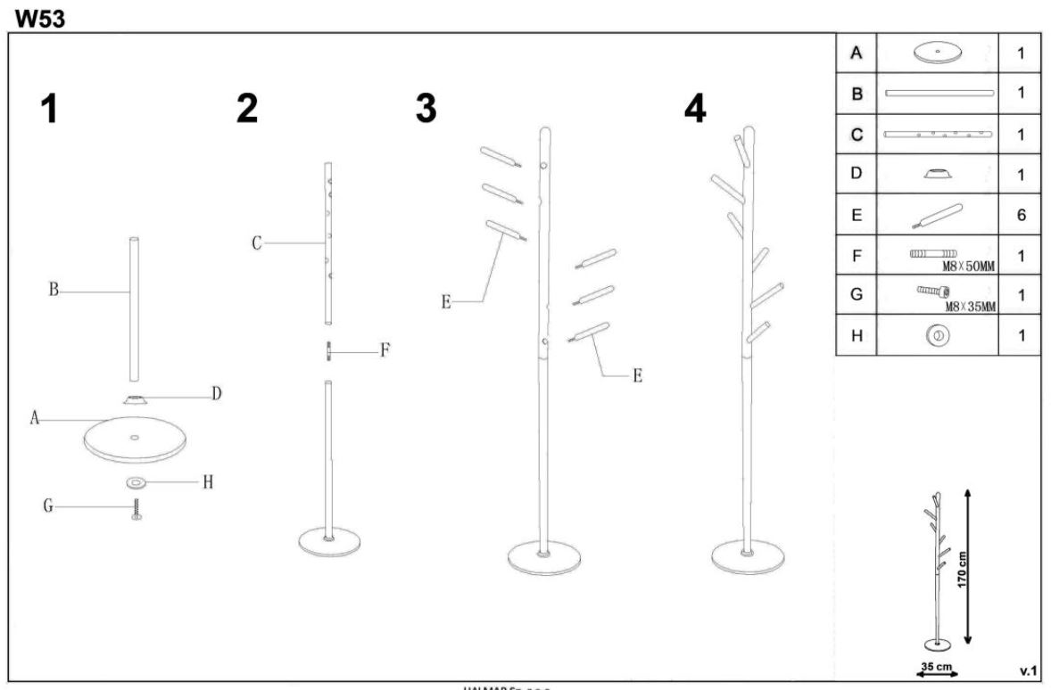 Wieszak wymaga krótkiego montażu, zgodnie z załączoną instrukcją.