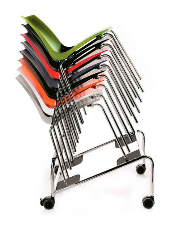 Wózek zaprojektowany do przewożenia i przechowywania krzeseł Ari i Mariquita.