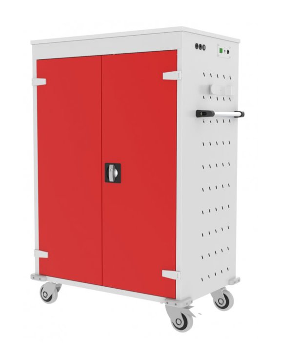 Korpus wózka posiada otwory wentylacyjne do cyrkulacji powietrza (chłodzenie ładujących się urządzeń).