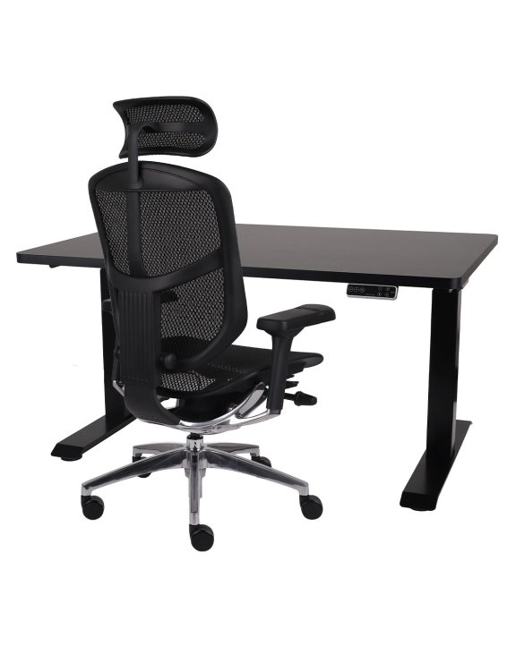 Zestaw, który składa się z wyjątkowego fotela Enjoy BS Black i funkcjonalnego biurka regulowanego Alto 101 Black, oferuje doskonałą ergonomię, nowoczesny design oraz wyjątkową jakość wykonania.
